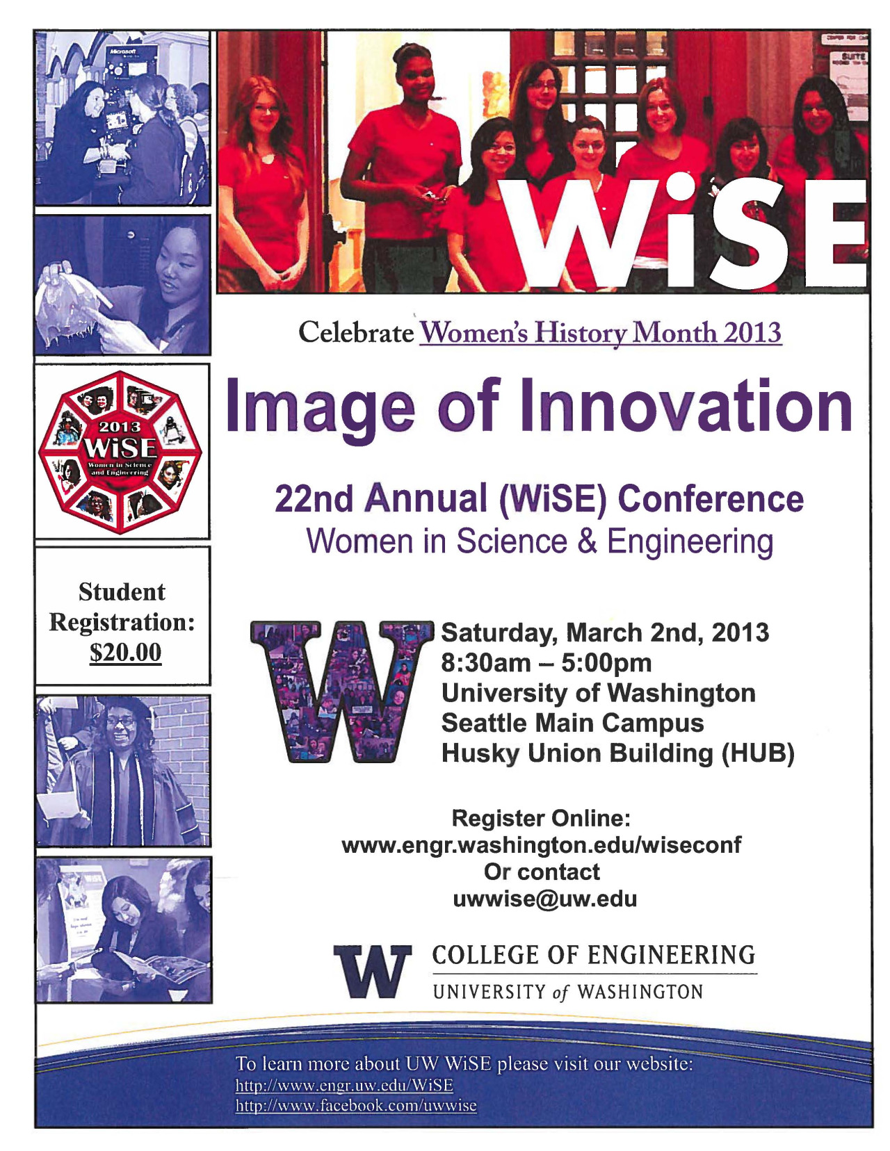 Register Online at www.engr.washington.edu/wiseconf or contact uwwise@uw.edu for more information.