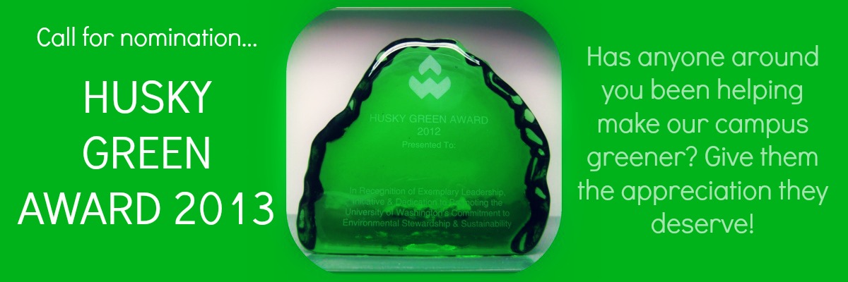 For the fourth year, the UW Husky Green Award will recognize students, faculty and staff who have demonstrated leadership, initiative, and dedication to environmental stewardship and sustainability. We need your help to ensure our students, peers and faculty don’t go unrecognized!