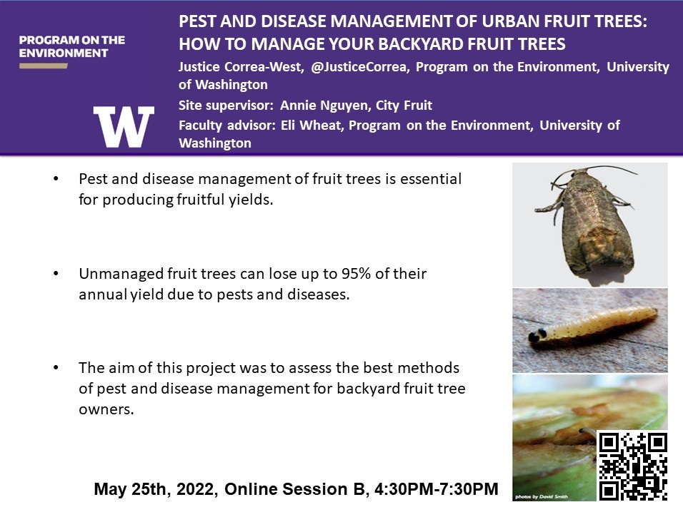 Justice Correa-West (Room #5) – Pest and Disease Management of Urban Fruit Trees: How to Manage Your Backyard Fruit Trees. Site Partner: City Fruit (Summary) (Poster PDF) (Video)