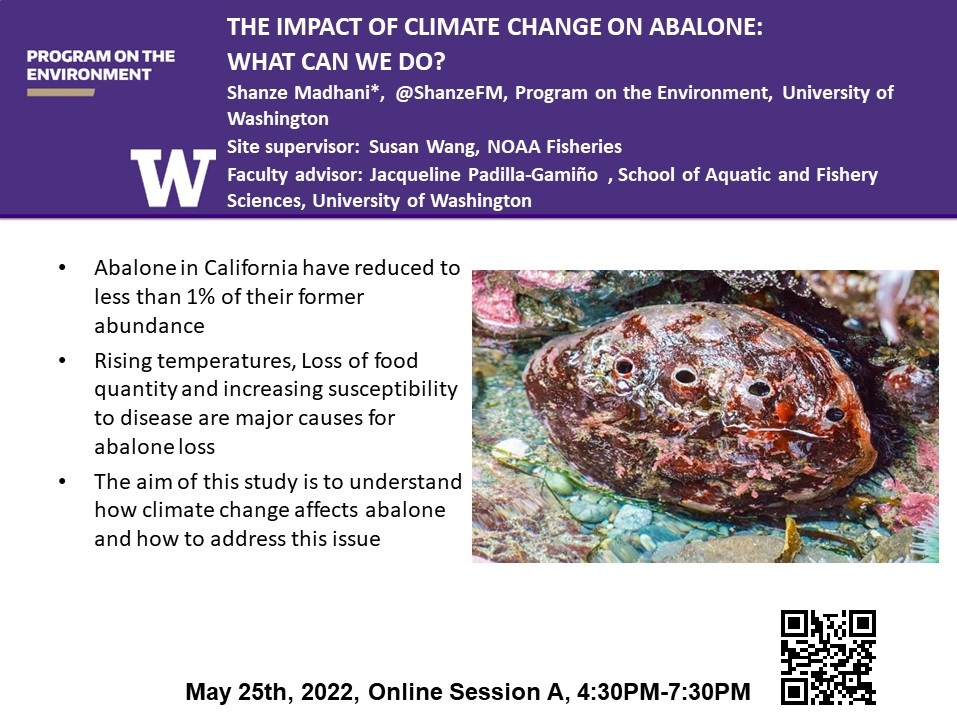 Shanze Madhani (Room #14) – The Impact of Climate Change on Abalone: What Can We Do? Site Partner: NOAA Fisheries (Summary) (Poster PDF) (Video)