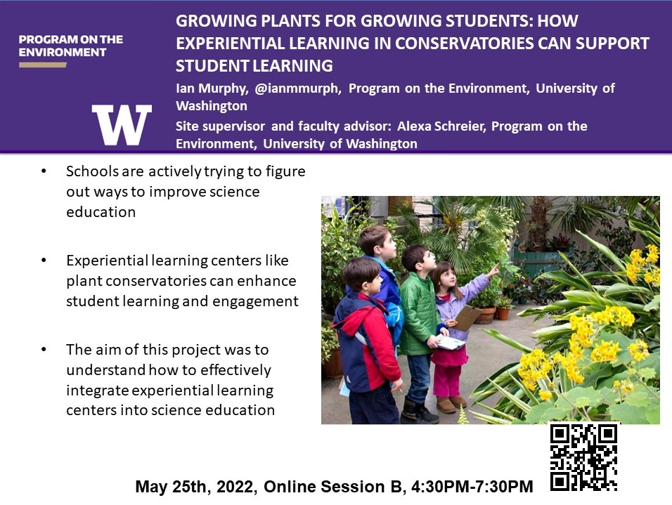 Ian Murphy (Room #14) – Growing Plants for Growing Students: How Experiential Learning in Conservatories Can Support Student Learning. Site Partner: (Summary) (Poster PDF) (Video)