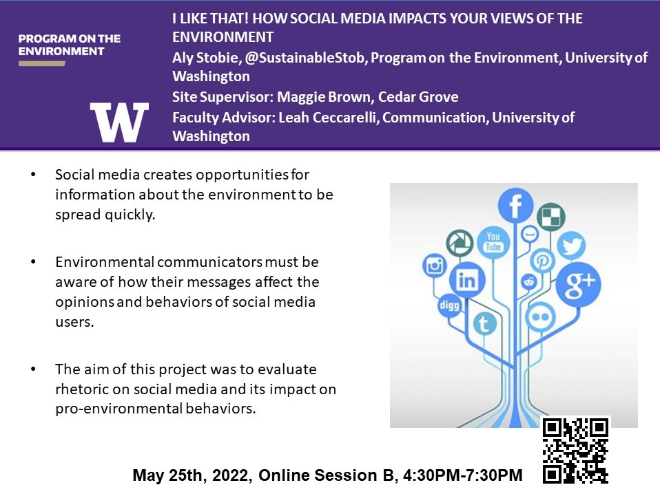 Aly Stobie (Room #17) – I Like That! How Social Media Impacts Your Views of the Environment. Site Partner: Cedar Grove (Summary) (Poster PDF) (Video)