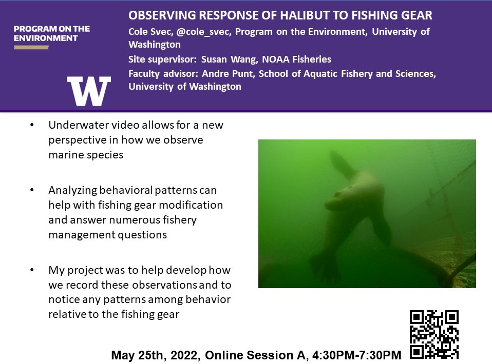 Cole Svec (Room #18) – Observing Response of Halibut to Fishing Gear. Site Partner: NOAA Fisheries (Summary) (Poster PDF) (Video)