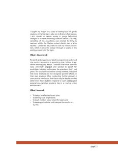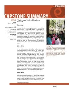 The main objective of my Capstone project was to design and implement a lesson plan catering specifically to the unique ecosystem features of Cranberry Lake in Shelton, Washington. My lesson plan focused on amphibians, and it was intended for a 4th/5th grade audience. I was interested in researching the behavioral effects of outdoor education on children, and I conducted teacher surveys to assess any noticeable behavioral changes following these lessons. After reviewing the data, though, I decided instead to focus on possible reasons that behavioral outcomes may differ between rural and urban populations.