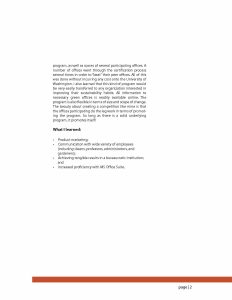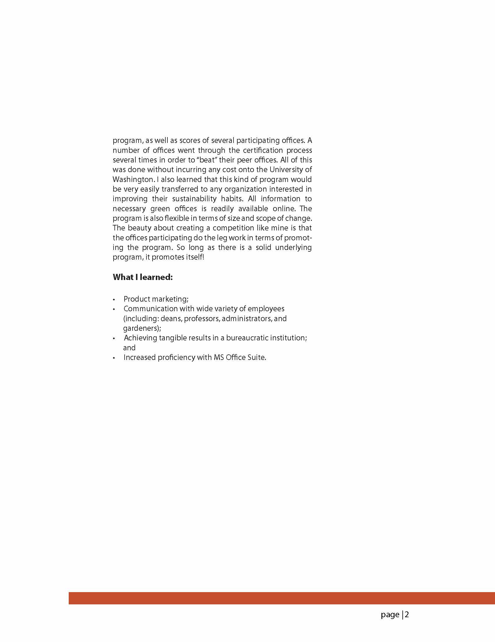 During my project, I assisted the University of Washington’s Office of Environmental Stewardship and Sustainability find offices willing to participate in their Green Office Certification Program. I decided to test whether using competition would be a useful and cost effective way to improve program participation.