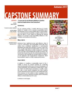 For my capstone project, I worked with Town & Country Markets to compile a 2016 corporate sustainability report. Knowing that Town & Country Markets places a great emphasis on environmental stewardship, I sought to further investigate the effects of such values by exploring the internal influence of corporate social responsibility initiatives on the workplace and employees themselves.