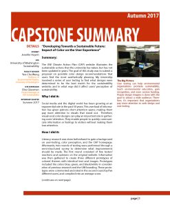 The UW Climate Action Plan (CAP) website illustrates the sustainable actions that the university has taken; but has not been updated in years. The goal of this study was to submit a proposal on possible color design recommendations that users find the most aesthetically pleasing. My internship involved a series of user testing to find what designs were determined to be the best match for the sustainability website; and in what way did it affect users’ perception of sustainability.