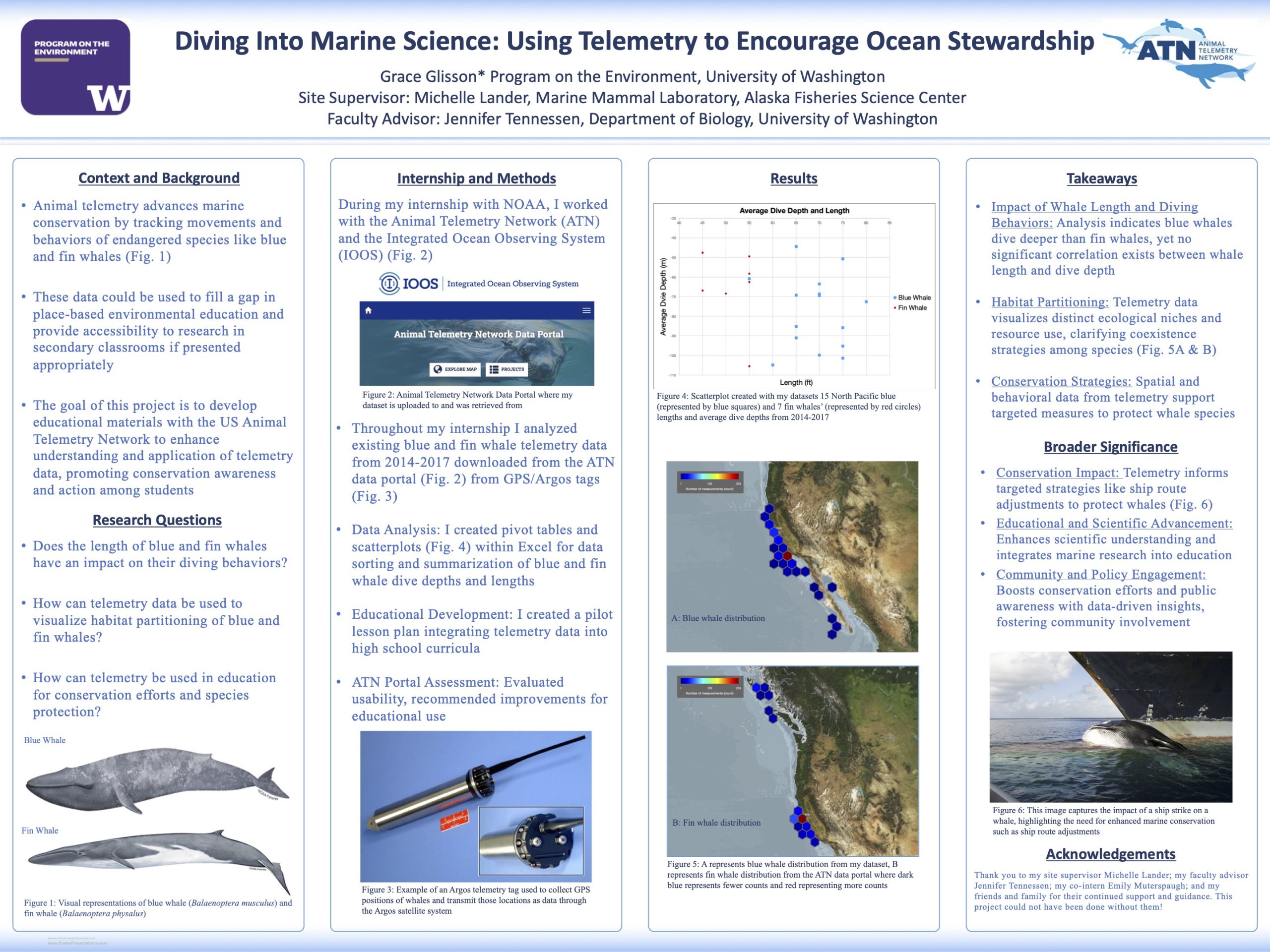 Animal telemetry, the science of gathering information on the movement and behavior of marine organisms using animal-borne sensors or electronic tags, is a powerful tool for studying elusive species such as blue and fin whales. Inspired by the need to utilize animal telemetry in education and deepen understanding of marine conservation, this project aims to integrate real-world scientific data into high school curricula by utilizing animal telemetry, motivated by the need to deepen understanding of marine conservation and inspire environmental stewardship. The U.S. Animal Telemetry Network (ATN) provides unity, stability, and continuity for collecting and managing marine telemetry data, vital for protecting endangered species and informing ecosystem-based management. Telemetry data obtained remotely, in real-time or archival mode from satellites enables researchers to document movements and survival of aquatic animals in relation to environmental variables, aiding in mitigating anthropogenic threats. During my NOAA internship with the ATN, I developed an educational lesson plan using telemetry data to explore the behavior and ecology of blue and fin whales. Despite their protected status under the Endangered Species Act, blue and fin whales face ongoing threats. Understanding their movements and behavior through telemetry data is crucial for effective conservation. This study analyzed telemetry data from 22 blue and fin whales, aiming to equip students with data analysis skills and foster environmental stewardship. By translating complex scientific research into accessible educational content, this approach prepares future generations to address global environmental challenges and nurture a sense of responsibility towards marine ecosystems.