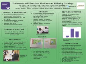As environmental issues increase, there is a push to implement environmental education at a young age. Finding the best ways to teach environmental education to a younger audience successfully is something we are still trying to figure out. To look further into this issue, I conducted a study to find out how well drawings reflected a student’s understanding of a habitat. This led me to the question of whether drawings can be used as an effective assessment tool. To accomplish this, I worked with Oxbow Farm & Conservation Center to develop and pilot an inclass lesson. The in-class lesson focused on the local amphibians found in the Snoqualmie Valley. During the lesson, I asked the students to draw what they thought an ideal habitat for an amphibian would look like pre and post lesson. While my study was done with a small number of students, it was still clear that their drawings reflected that they understood what factors are needed for an ideal amphibian habitat. Many of the students’ post-lesson drawings had moderate to visible changes that included factors that were taught during the lesson. Seeing that the drawings were an effective way in assessing learning, non-traditional teaching methods like this should be explored more. Further assessment guidelines should also be created to increase successful environmental education in the classroom.