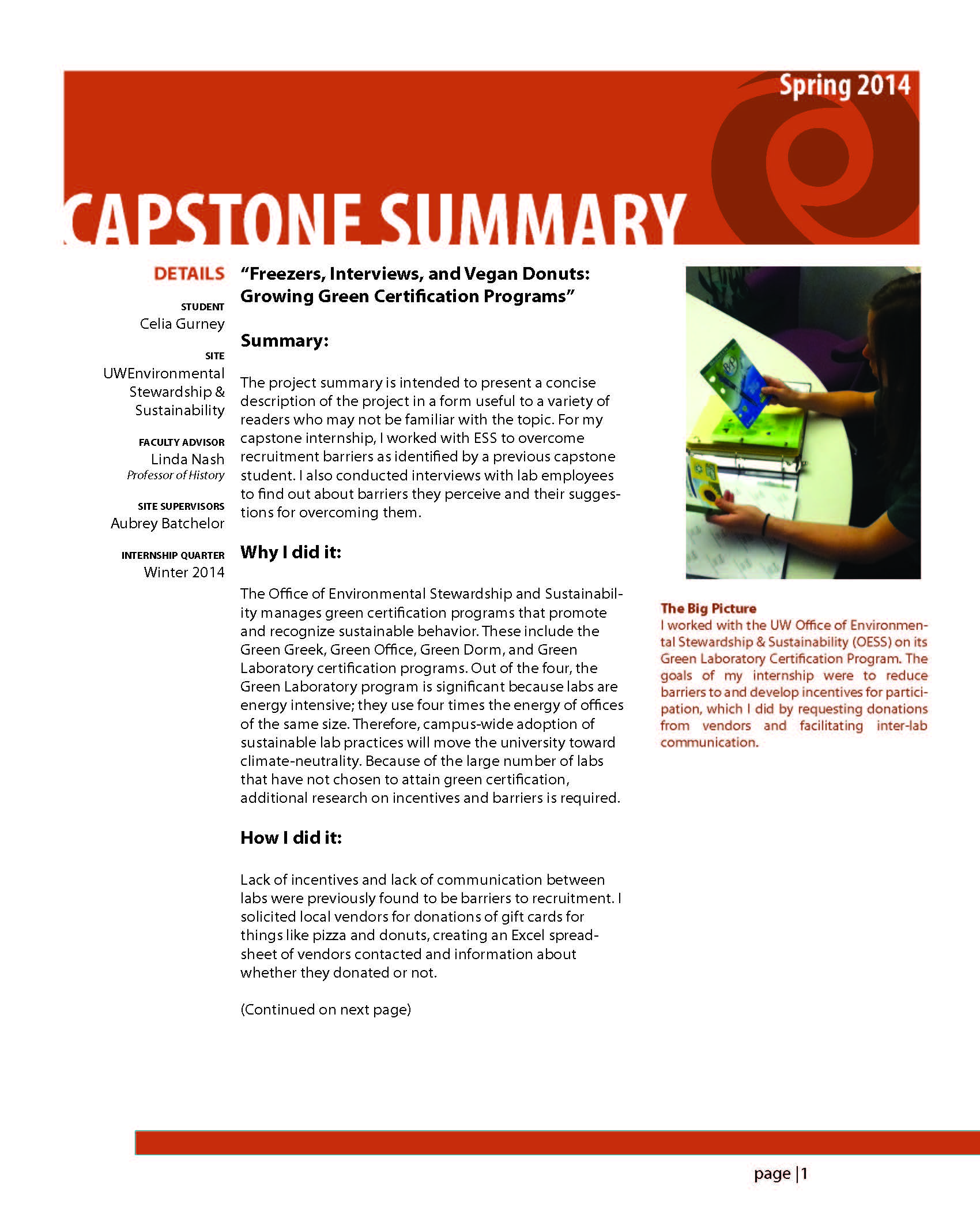 The project summary is intended to present a concise description of the project in a form useful to a variety of readers who may not be familiar with the topic. For my capstone internship, I worked with ESS to overcome recruitment barriers as identified by a previous capstone student. I also conducted interviews with lab employees to find out about barriers they perceive and their suggestions for overcoming them.