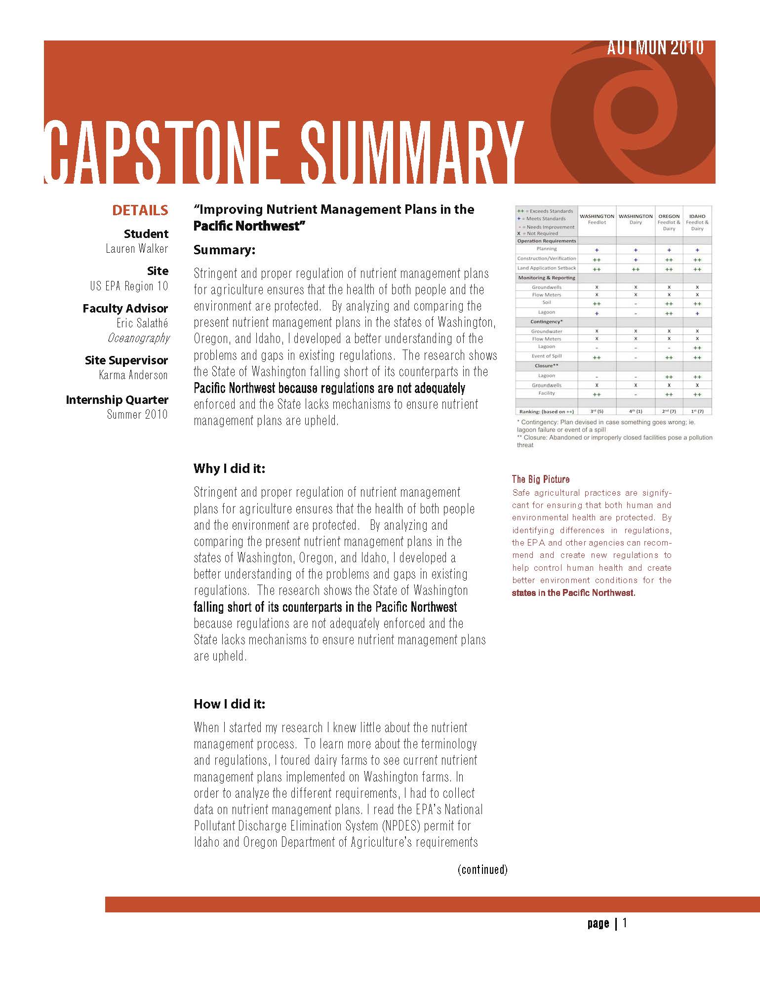 Stringent and proper regulation of nutrient management plans for agriculture ensures that the health of both people and the environment are protected. By analyzing and comparing the present nutrient management plans in the states of Washington, Oregon, and Idaho, I developed a better understanding of the problems and gaps in existing regulations. The research shows the State of Washington falling short of its counterparts in the Pacific Northwest because regulations are not adequately enforced and the State lacks mechanisms to ensure nutrient management plans are upheld.