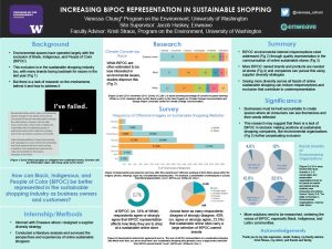 There is a prevailing exclusion of Black, Indigenous, and People of Color (BIPOC) in the environmental movement, and the sustainable shopping industry is no exception. While there has been a lot of media calling attention to the need for more representation in this industry, there is a large gap in academic research. The intention of this work is to better understand underrepresentation in sustainable shopping, particularly how BIPOC are impacted as businessowners and consumers and how to address it. For my internship with Enweave, I designed a supplier diversity strategy to guide our company in partnering with and supporting more BIPOCowned brands. I researched established strategies of other companies and systematic inequalities specific to the sustainable shopping industry, and conducted a survey on the perspectives and experiences of people who shop at sustainable online stores. My research supports how common misperceptions and exclusion of BIPOC in environmental spaces may likely perpetuate exclusion in the sustainable shopping industry as well. From my survey, consumers feel that sustainable shopping contains some areas of underrepresentation. Creating diversity strategies that center on creating quality partnerships with BIPOC-owned brands and increasing the number of products carried by these brands, is a major way sustainable stores can address this representation gap in sustainability. The sustainability industry can be more inclusive and equitable when businesses are held accountable to create spaces where all consumers can see themselves and their needs reflected.