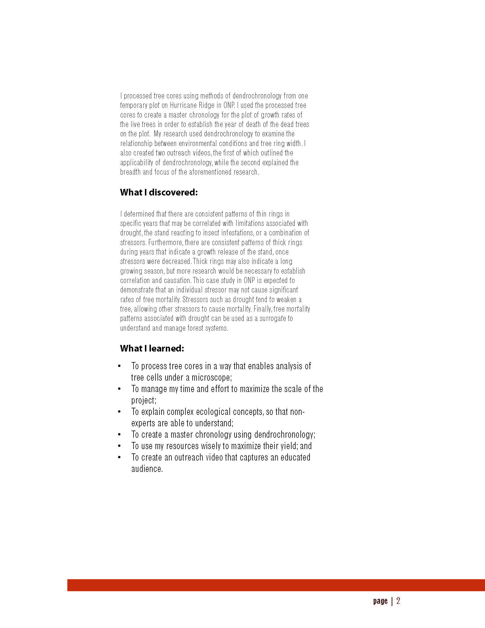 There are many agents that cause stress to trees, such as insects, fungi, climatic conditions, drought, suppression, and competition. Drought is a significant stressor on trees and is of great importance to tree mortality dynamics. Using and analyzing dendrochronology to cross-date tree growth with climate conditions, we examine the relationship between subalpine fir (Abies lasiocarpa), drought, and other stressors on the Olympic Peninsula. I examined tree ring characteristics in A. lasiocarpa from a temporary plot (OR-04) in the Olympic National Park to identify mortality patterns in relation to specific factors associated with death.