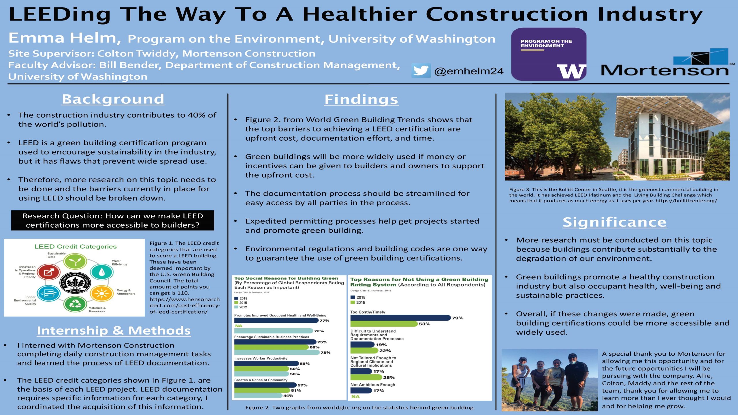Construction continues to be a booming industry as the population rises and urbanization increases. The industry has done a great job of meeting demand and building successfully, but at the expense of the environment. One source says that about 40% of carbon emissions in the world come from the building sector, 28% coming from building operations and 11% coming from construction and materials. Green building systems have become increasingly popular with programs like LEED being the most popular in the United States. The purpose of this study was to find how LEED is currently being used in the construction industry and how it can be used better to continue the movement for healthier people and a cleaner environment. To accomplish this task I worked for Mortenson Construction on a hopeful LEED silver certified building and I also completed a literature review on the topic. Findings show that LEED is mostly implemented due to client demands and environmental regulations and it is successful because it lowers operating costs and increases occupant well-being. It has also been found that there are three main issues with LEED; it is much more costly upfront, the documentation process is complicated, and LEED can make a project timely. Incentive options like loans, grants, expedited permits, and increased building size have been shown to increase the likelihood of using green building systems. Incentives should be more widely accessible to owners and contractors so that they will be more willing to look past the barriers and build green.