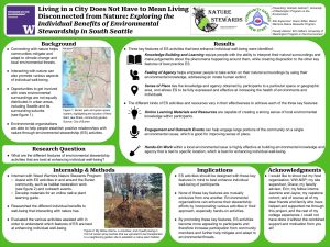 Interacting with nature is important for the health and well-being of individuals and communities as it promotes physical exercise, facilitates clean and healthy environments, and helps us fulfill basic evolutionary human needs. However, living in an urban environment with development and technology surrounding every aspect of life can make forming deep and intimate personal connections with nature difficult. The purpose of this project was to understand how and why urban residents can and should develop connections with nature by partaking in environmental stewardship activities not only for the health of local ecology but also to promote individual health and well-being. To accomplish this, I extensively reviewed the literature on the various individual benefits to health and well-being that interacting with nature has and the different ways this can be achieved. Additionally, I also conducted an internship with Weed Warriors- Nature Stewards Program; performing environmental restoration work, assisting in carrying out various environmental outreach programs, and developing native plant learning content for the organizations community garden web-page. Using the insight from my research and experiences, I used a critical lens to evaluate the effectiveness of the different environmental stewardship activities that I performed at promoting the individual benefits of interacting with nature. I found that activities which are hands-on, interactive, as well as those that inspire and equip people to become actionable agents in their societies to be the best for effectively engaging people with environmental stewardship while simultaneously maximizing the personal benefits they are able to gleam from the experience. As the population of cities continues to grow, environmental problems perpetuate, and the conveniences of technological innovation and development expand, it is important to understand not only how, but why urban residents in all communities can and should develop bonds with their natural surroundings.