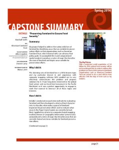My project helped to address the nation wide loss of farmland by identifying areas that are suitable for preservation efforts so that organizations such as American Farmland Trust, who I interned with, can advance their policy goals. To accomplish this I used computerized spatial analysis to produce a series of maps that describe the state of farmland and depict areas suitable for preservation efforts.