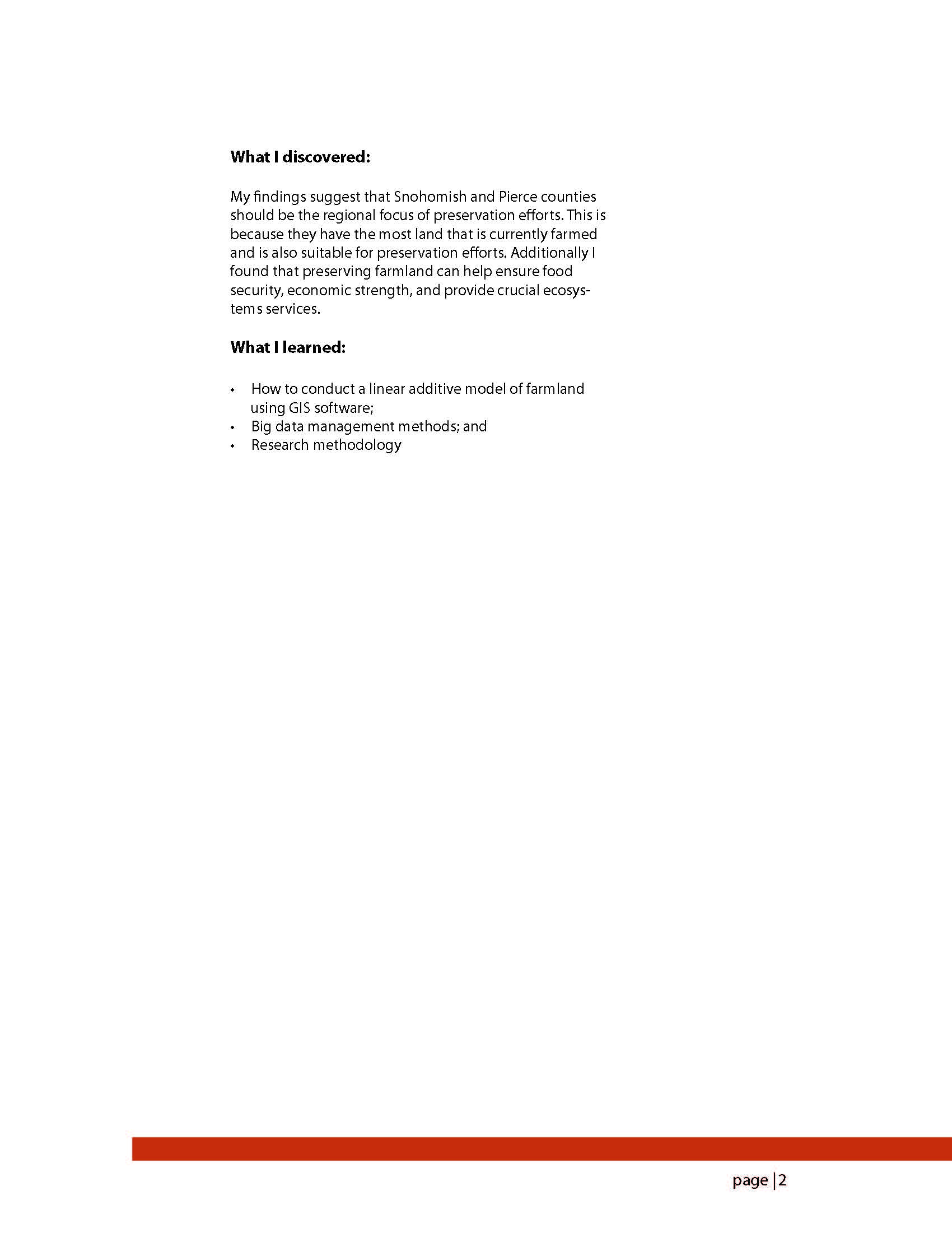 My project helped to address the nation wide loss of farmland by identifying areas that are suitable for preservation efforts so that organizations such as American Farmland Trust, who I interned with, can advance their policy goals. To accomplish this I used computerized spatial analysis to produce a series of maps that describe the state of farmland and depict areas suitable for preservation efforts.