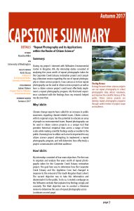 During my project I interned with Stillwaters Environmental Center in Kingston, WA. My internship duties consisted of analyzing five years’ worth of repeat photographs taken for the Carpenter Creek Estuary restoration project and compiling a literature review regarding the use of repeat photography in citizen science projects. I was curious as to how repeat photography can be used in citizen science projects as well as how a citizen science project could most effectively implement a repeat photography program. My first-hand experience combined with the findings from my research helped me discover that.