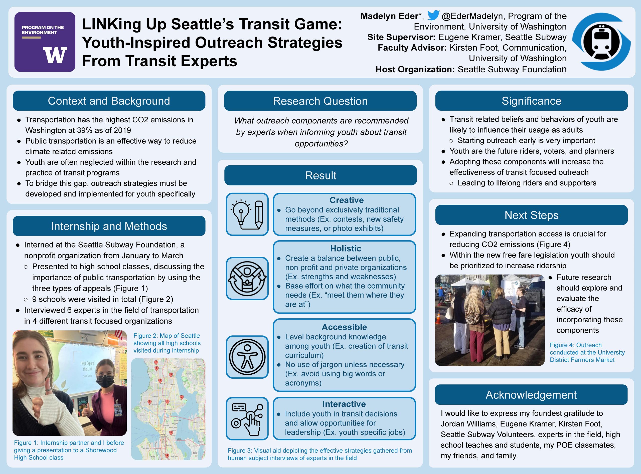 The relationship between transportation and climate change is often overlooked despite the fact that the sector contributes significantly to climate-related emissions through the release of particulate matter and CO2. The potential for emission reduction through public transportation is promising, yet the younger generation is frequently neglected. The aim of this study is to learn how to influence youth to make travel decisions in favor of public transit. During my internship with the Seattle Subway foundation, I conducted interviews with six transportation experts from different organizations, including Sound Transit, Transportation Choices Coalition, King County Metro, and the Seattle Department of Transportation, to explore how they engage with young demographics. As a result, six specific recommendations were formulated to tackle how to engage and influence the upcoming generation of youth. Recommendations encompass going beyond traditional methods, fostering a harmonious coexistence of diverse organizational types, community-driven action, equitable knowledge dissemination, avoidance of technical jargon, inclusion of youth in decision-making processes, and providing youth leadership opportunities. Despite this, there remains a disconnect between research and practical application, as only limited inquiry has been undertaken into present-day practices. To close this gap and prioritize the needs of young people, further research must be pursued with a focus on amplifying youth voices and recognizing their valuable contributions. The younger generation holds the key to the future of public transportation and reduced dependence on personal vehicles. There is a responsibility to provide sufficient information and accessibility to public transportation options through targeted outreach strategies.