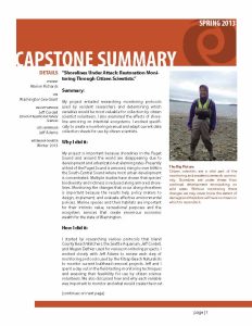 My project entailed researching monitoring protocols used by resident researchers and determining which variables would be most valuable for collection by citizen scientist volunteers. I also examined the effects of shoreline armoring on intertidal ecosystems. I worked specifically to create a monitoring manual and adapt current data collection sheets for use by citizen scientists.