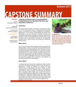 Throughout my internship, I focused on creating the content for a new educational center at Stillwaters Environmental Center, a restoration and outreach organization in Kingston, Washington. I was in charge of determining the themes and information to use for 12 posters I created. I became very interested in researching what aspects of design was the most attractive as well as most impactful on memory recall. I set up interviews and an experiment to attempt at answering this curiosity and to create posters that would most effectively impact visitors.