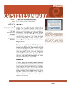 Working with the People for Puget Sound (PPS), we assisted in the creation of eleven fact sheets and one YouTube video about environmental sites. Using these outreach materials as the basis for a study, we designed an experiment to more effectively understand how the general public responds to the different formats. Our research focused on environmental outreach to indicate the usefulness of technology in the attempt to increase individuals’ willingness-to-act (WTA), which is an important driving force resulting in pro-environmental behavior.