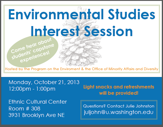 Interested in learning more about Environmental Studies? Interested in finding out more about the major from a students perspective? Feel free to attend this interest session! Snacks and good company will be provided.