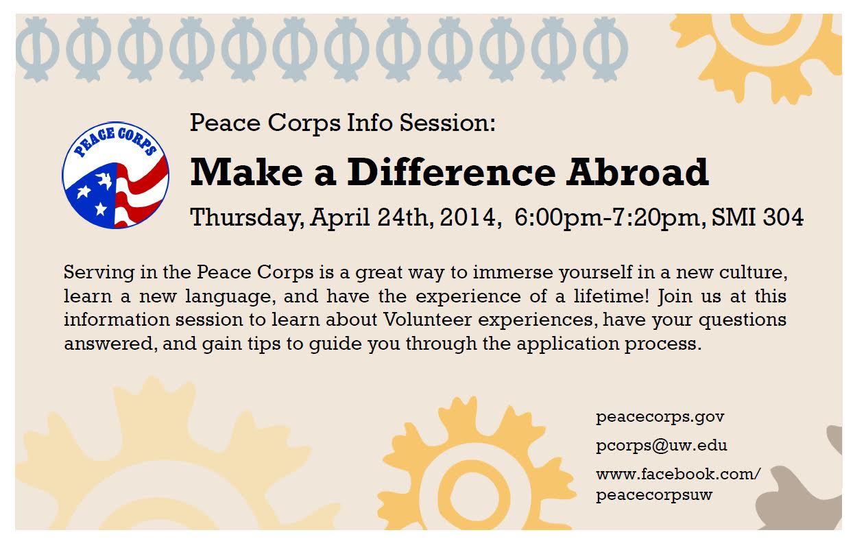 For all of you that are interested in the Peace Corps, an information session will be held on campus tomorrow! It is a good chance to learn more about the program and have any questions answered that you may have.