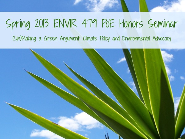 Spring 2013 ENVIR 479 PoE Honors Seminar- 2 credits